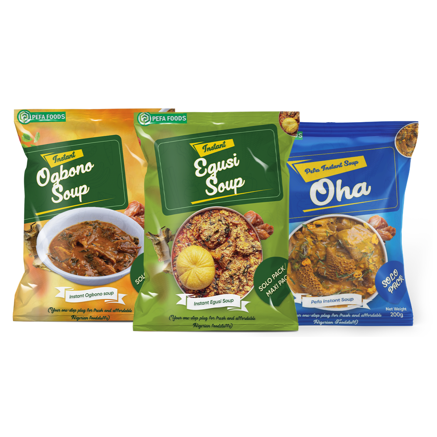 | Soup Pack | Egusi (100g, 7 packs), Ogbono(100g, 7 packs), Oha (100g,7 packs) |